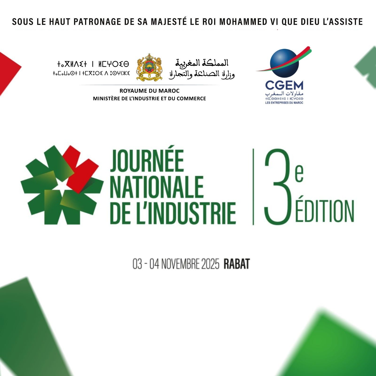 Du 3 au 4 novembre 2025, la Société Bado a eu l’honneur de participer à la 3ᵉ Édition Nationale de l’Industrie, un événement majeur organisé par le Ministère de l’Industrie et du Commerce et la CGEM, sous le Haut Patronage de Sa Majesté Le Roi Mohammed VI que Dieu L’assiste.